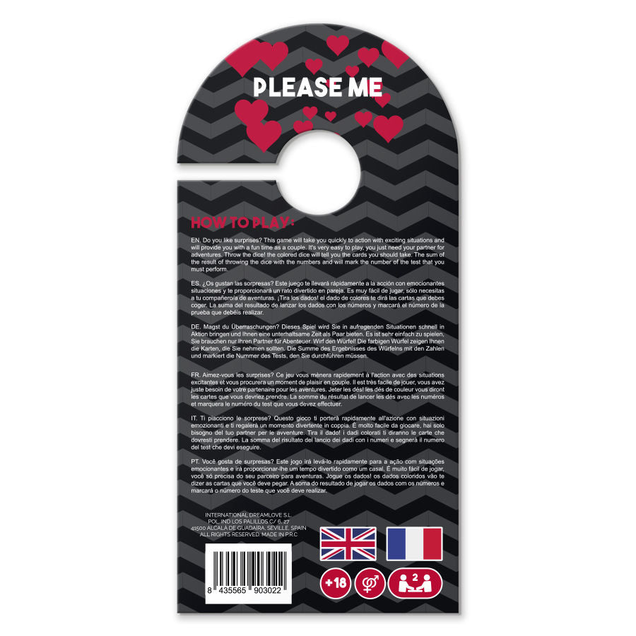Ti piacciono le sorprese? Questo gioco ti porterà rapidamente all'azione con situazioni eccitanti e ti regalerà momenti divertenti in coppia. È molto facile da giocare, hai solo bisogno del tuo compagno di avventura. Tira il dado! I dadi colorati ti diranno le carte che dovresti prendere. La somma del risultato del lancio dei dadi con i numeri e segnerà il numero della prova che devi lanciare.