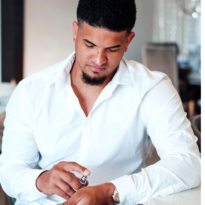 Considera muschio di quercia, citronella e chiodi di garofano mescolati con geranio, legno di sandalo e menta, il tutto stratificato su una sottile base di vaniglia, gelsomino e cedro. In combinazione con i feromoni infusi nel profumo, la sensualità fluirà naturalmente. Trasuderai la fiducia che hai sempre avuto, con una spinta ad aiutare la tua data o il tuo partner a riconoscere e ricordare le cose che ti hanno unito.