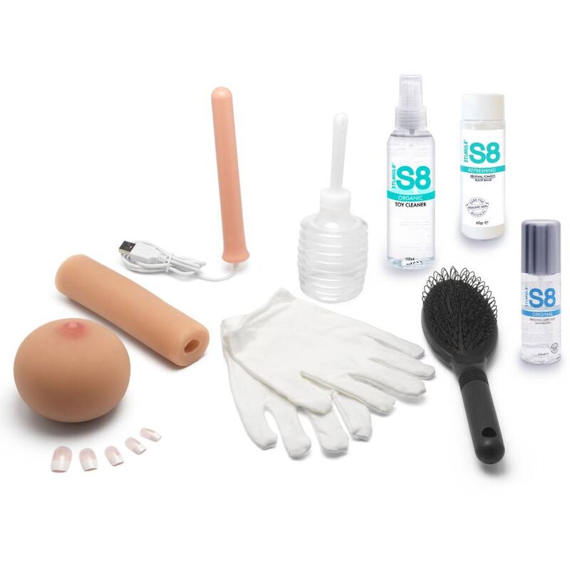 Questa bambola di lusso viene fornita con una vasta gamma di accessori per mantenere la tua donna sempre al meglio! Inclusi nella confezione ci sono due set di biancheria intima birichina, detergente per giocattoli S8 Quality, lubrificante S8 Silky, polvere S8 Renewal, guanti di cotone bianco per spostare/maneggiare la bambola, un set di unghie sostitutive, una bacchetta riscaldante USB, un irrigatore detergente, un spazzola per capelli e dettagliate istruzioni per la cura. Se vuoi il vero affare, questa Bangers Babe è la tua coppia perfetta e piacevole! Si noti che, a causa delle dimensioni e del peso, questo articolo non viene fornito nella confezione del prodotto convenzionale e verrà invece spedito in una discreta scatola di cartone.