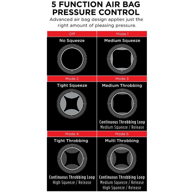 - Controllo della pressione dell'airbag a 5 funzioni: il design avanzato dell'airbag applica la giusta quantità di pressione piacevole. Premere per attivare e tenere premuto per 3 secondi per rilasciare.