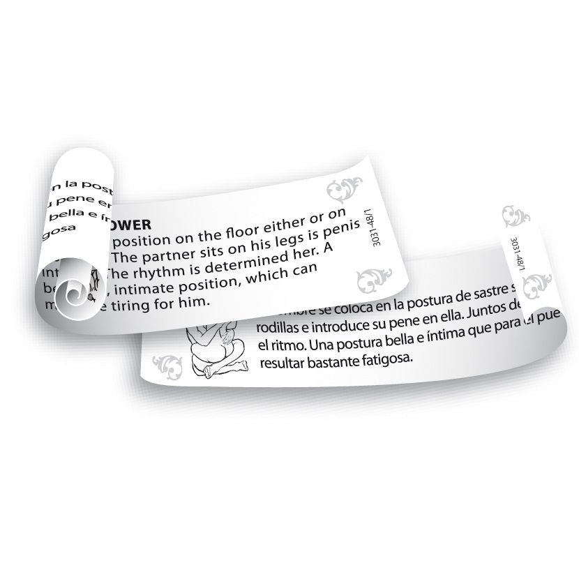 Una sensazione per te e il tuo partner! Tu o il tuo partner rimuovete un rotolo dal cuore con l'aiuto di una pinzetta. Che posizione erotica farai? È "l'altalena", "la barca dell'amore" o "l'adorazione"? Osate la sfida insieme e sperimentate insieme il piacere e l'intimità.